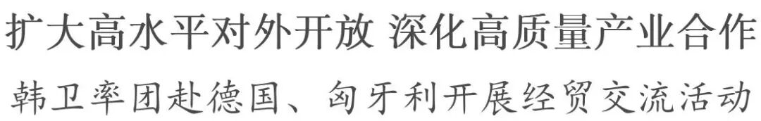 3月24日至30日,市委书记韩卫率代表团赴德国、匈牙利开展经贸交流活动,参访企业、拜访商会、洽谈项目,深度链接全球优质资源,持续拓宽合作领域、提升合作层次,深化产业务实合作,推动全市对外开放水平迈上新台阶。